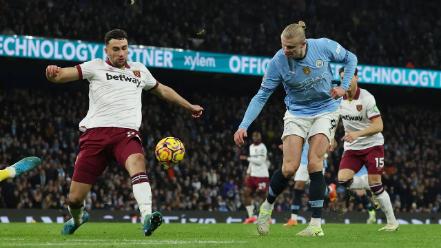 Haaland followed up his header late in the first half by calmly chipping over advancing West Ham keeper Alphonse Areola after running on to a through ball from Savinho.